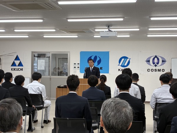 既存の社員・新入社員の方へ感謝のお気持ちや今年度の目標を述べられました